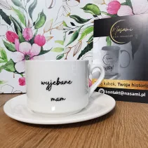 Wersja 150 ml zawiera porcelanowy talerzyk i dopasowaną łyżeczkę, a.Filiżanka - wyjebane mam