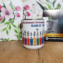 Elegancki kubek Dla Nauczyciela Kredki + imiona dzieci 330 ml/400 ml