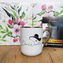 55,00 zł -10,01 zł PROMOCJA!!! 44,99 złElegancki kubek z napisem „Dama się nie bywa, dama się jest” – z obu stron ten sam tekst. Klasyczna forma i białe tło podkreślają wyrafinowany charakter. Imię możesz dowolnie.