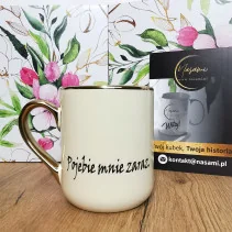 Nadruk jest trwały i odporny, a całość utrzymana w modnym, matowym wykończeniu. Kubek dostępny w kilku wersjach kolorystycznych, co pozwala dopasować go do stylu i gustu obdarowanego.